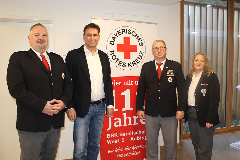 Sebastian Kriesel, Vorsitzender des Bezirksausschusses Aubing-Lochhausen-Langwied (BA 22), hat die Schirmherrschaft für das Festjahr des Roten Kreuzes in Aubing übernommen. Er dankte ebenfalls den Ehrenamtlichen für ihren Dienst an der Bevölkerung, den die Bereitschaft nun seit 111 Jahren leistet. Der BA-Vorsitzende bekräftigte am Festabend, dass er nicht nur das Rote Kreuz, sondern auch die freiwillige Feuerwehr Aubing sowie das THW weiterhin als Teil Aubings unterstützen wird. Für dieses Engagement dankte auch das Rote Kreuz: BA-Vorsitzender Kriesel erhielt die Ehrenplakette des BRK in Silber für sein Engagement.
